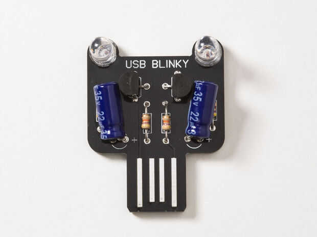 Había integrada el enchufe USB en el PCB, por lo que es más simple y económico. Puede enchufar USB Blinky en cualquier tomacorrientes USB - computadoras, cargadores, en todas partes.