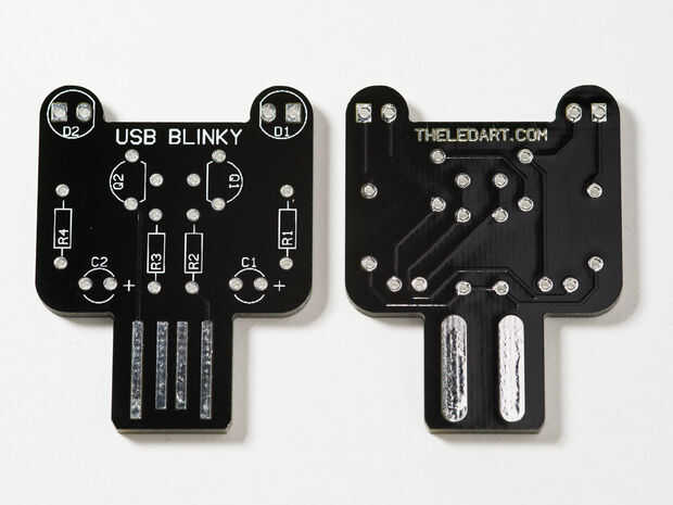 Sin embargo si encuentra su USB Blinky se pierda demasiado en el conector, puede poner alguna soldadura en la parte trasera del enchufe USB - hay dos tiras de pad que puede recubrir con soldadura. Poniendo una buena cantidad de soldadura se puede ajustar el ajuste de la clavija USB.
