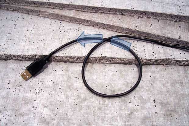 a partir de lo que será el extremo fijo de la cuerda (el extremo del cable conectado a un dispositivo estacionario como una computadora de escritorio o un tomacorriente de pared):