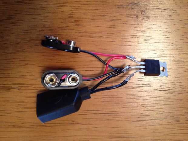 -El positivo de la USB para el tercer pin de su regulador de la soldadura