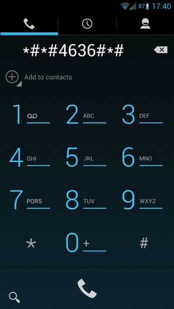Para comprobar en android que utiliza carga rápida de AC y no USB, escriba en el marcador: * #* #info #* #* o * #* #4636 #* #*
