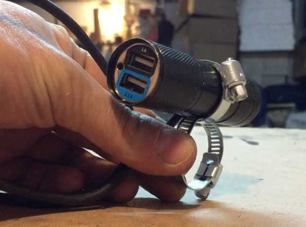 esta moto tiene un eje delantero de Dinamo que está conectado a las luces de LED. Además hay una salida de energía a través de un conector USB hembra. Usted puede cargar su teléfono, ipod, GPS o cualquier dispositivo con alimentación USB.En este di