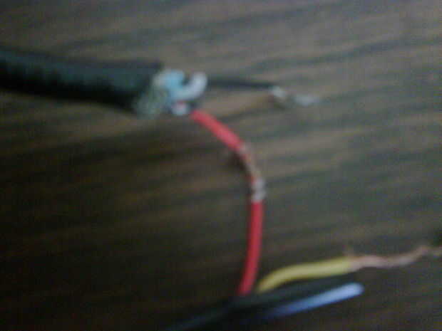 para preparar el cargador del teléfono celular, hacer lo mismo que fue hecho con el cable usb que solo los alambres en mi cargador de celular partido rojo y amarillo los hilos rojos juntos, el amarillo y el negro junto