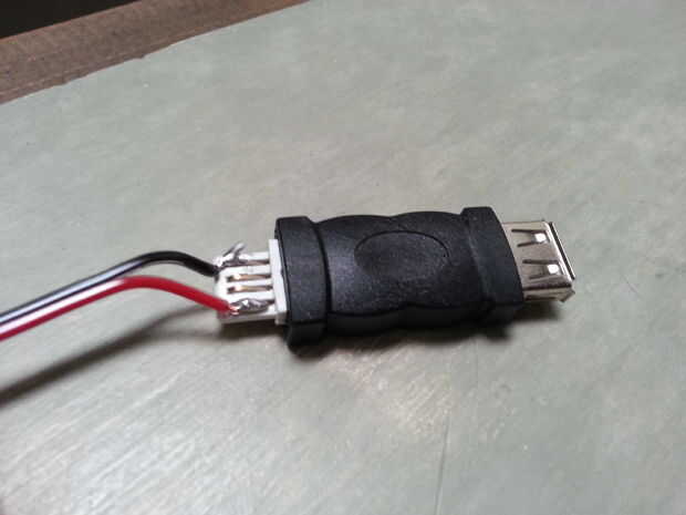 El pinout para el usb también es muy sencillo. Si te fijas whit el cobre mirando hacia arriba y contando de derecha a izquierda, el primer pin es 5 voltios y el pin 4 es tierra. Subo una imagen para que veas más claro.