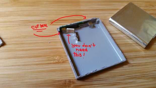 Con el fin de separar completamente la batería de la caja, usted necesita cortar los terminales de la batería. Usted puede hacer eso con un sistema de tijeras o alicates de corte. Sólo tenga cuidado de no cortocircuitar la batería. Deseche la batería del Li-ion en consecuencia. Recuerde que puede causar incendios por lo que podría evitar esto con una cinta it