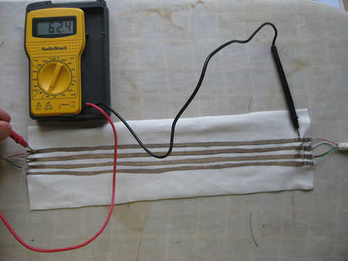 La resistencia por una tira fina de 5mm más de 30 cm parece ser aproximadamente de 60 Ohm. Usted puede realmente cerca de la mitad la resistencia haciendo la tira doble de ancho (1cm).