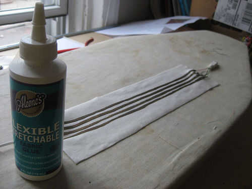 Tampoco puede aislar cada rastro individualmente o, como acabé de hacerlo, puede extender una fina capa por todos los rastros y los espacios utilizando un trozo de cartón para extender el pegamento tras primera aplicarlo uniformemente.