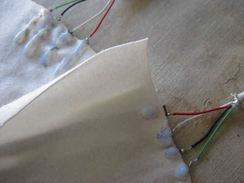 También tienes que aislar el conductoras puntadas en la parte posterior de la tela!
