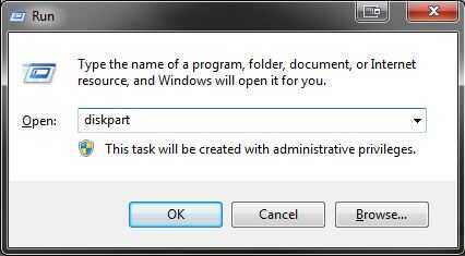 -Tipo de diskpart en el símbolo que aparece y presione Entrar