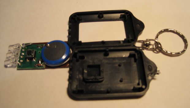 Utilice alicates para doblar la vajilla pequeña que contiene el llavero anillo en y solo haga palanca aparte en las costuras. Es así de fácil.