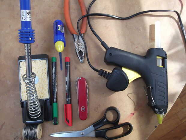 -Cinta de aislar (yo no tenía ninguno así que he utilizado cinta adhesiva para conductos, no funciona así)