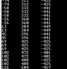 Para identificar los ejes de acelerómetro, girarla sólo de una manera en un momento y observe lo que cambia. También se puede ver cómo estos datos estan en bytes, pero los datos del acelerómetro deben ser que una palabra firmada porque hay gira de 0xfff7 a 0x0007 lo que indicaría un resultado negativo a la conversión positiva.