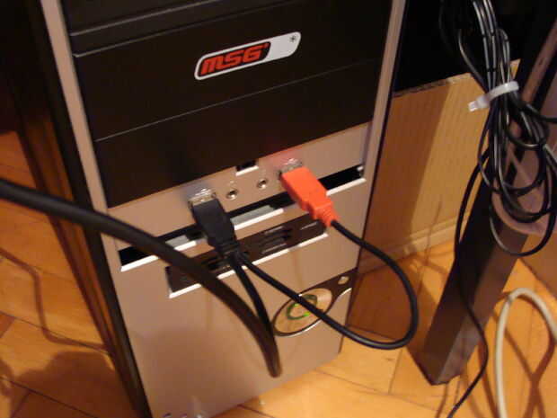 Ahora sólo tenemos que conectar USB adaptador y fuente de alimentación a los conectores, dar el disco duro en lugar de la tienda y empujar un disco en línea para la disco y divertirse!