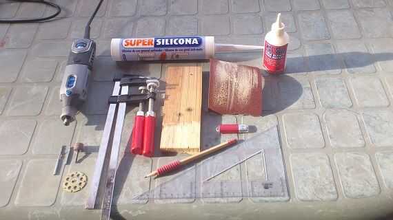 6.-dos abrazaderas para fijar la madera mientras pegado