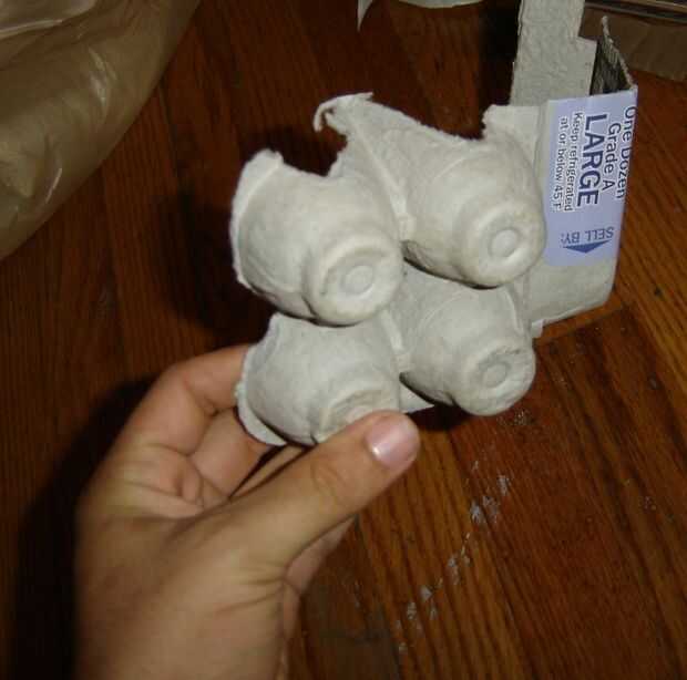 Conseguir un cartón de huevos y corte para arriba y dóblalo para que tenga un huevo de cartón. Asegúrese de cortar un agujero para el cuello.