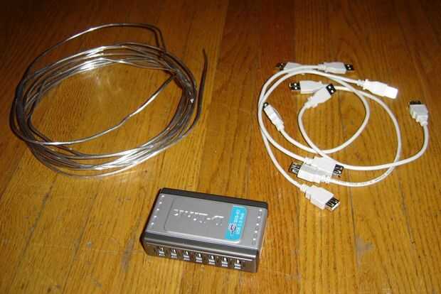 estoy seguro de que esto se ha hecho antes, pero mirando el montón de cables y una mierda en mi escritorio encontré bastantes piezas para construir esto...Usted necesitará un controlador de Nintendo viejo o algún otro caso inteligenteHub USB de $0,10