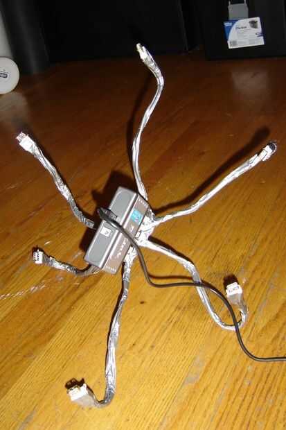 estoy seguro de que esto se ha hecho antes, pero mirando el montón de cables y una mierda en mi escritorio encontré bastantes piezas para construir esto...Usted necesitará un controlador de Nintendo viejo o algún otro caso inteligenteHub USB de $0,10
