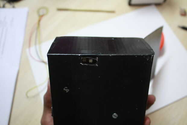 Ahora corte un pequeño pedazo en la base para poder colocar el sensor de sombra.