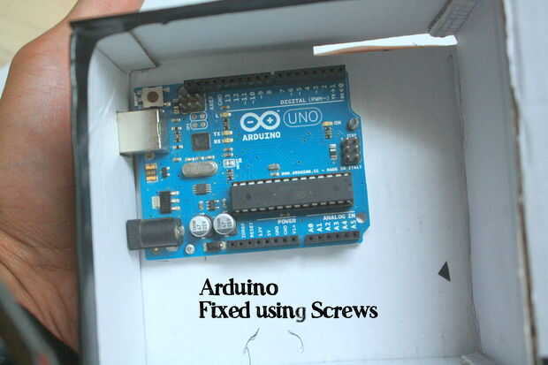 Después de haber creado el caso, fijar el Arduino a la base con tornillos.