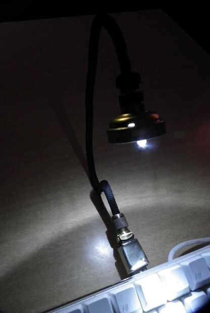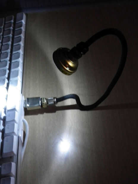 (Nota: hay un defecto de diseño básico en estas luces LED de la USB, que hace casi imposible hacerlo a pie directamente desde el puerto USB. Por lo tanto es necesario doblar, tal que el peso es soportado por cualquier superficie el teclado o esté apoyado en la laptop).