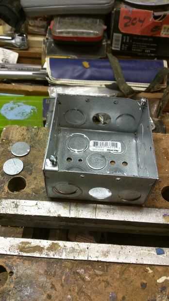 Retire dos separadores de 1/2 pulgada en la caja (los más pequeños) uno sobre el otro. También noquear a un 1/2 octavos de final en la parte posterior cerca del fondo, elegí la parte inferior derecha al mirar la lámpara desde la parte delantera.