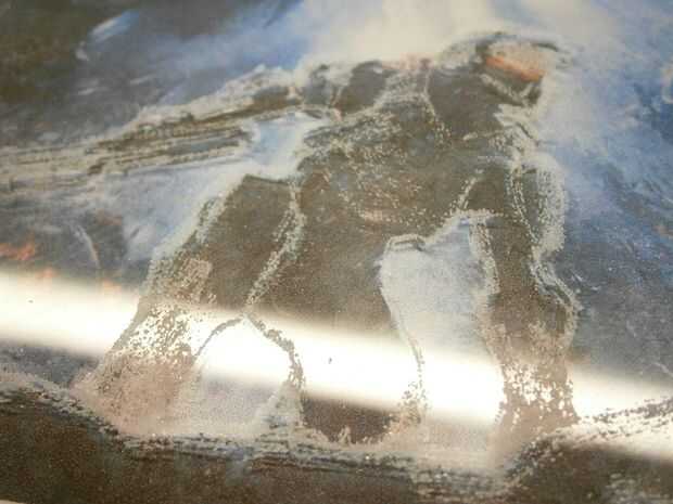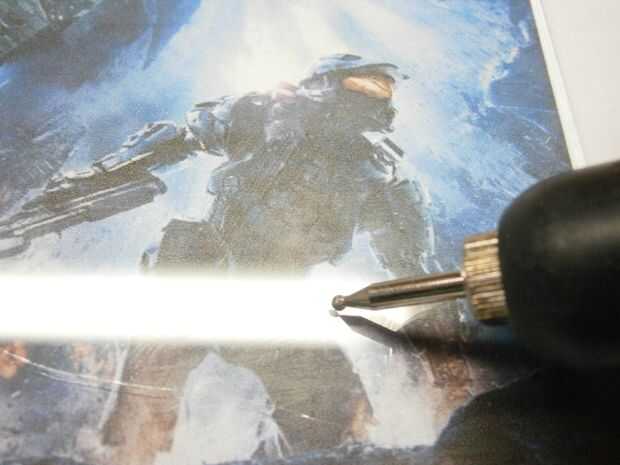Utilizando el taladro de una fábrica de diamantes, copiar la nueva perforación de las piezas más brillantes y no hacer nada con los oscuros, pues el LED ligt zonas ásperas... Tratar de obtener un gradiente de luz. Asegúrese de que los dos dibujos encajen correctamente.