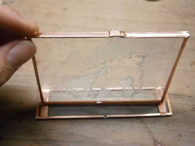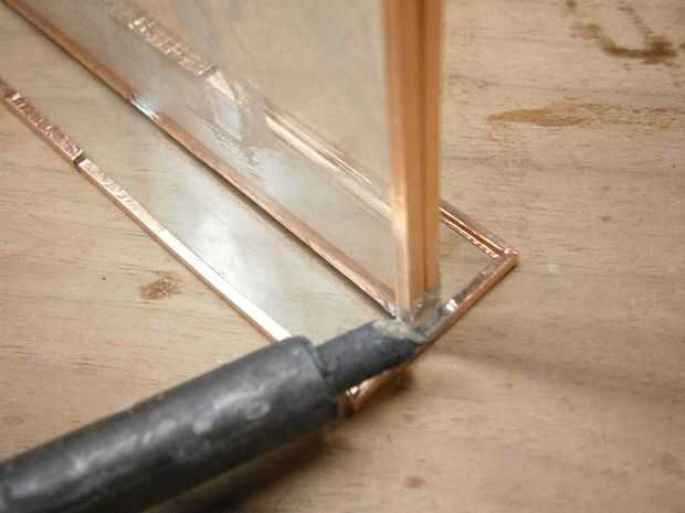 Cubrir los bordes con cinta de cobre dejando dos huecos en el centro de cada lado.