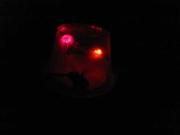 usando un viejo cuerpo de 'Tap Light' que utiliza 4 pilas AA y una elemento bombilla de tungsteno, convirtió a un USB cargador alimentado noche luz mediante 2 viejo bicicletas Faro 'cabezas'. Se produce un patrón agradable, suave y hasta luz, en est