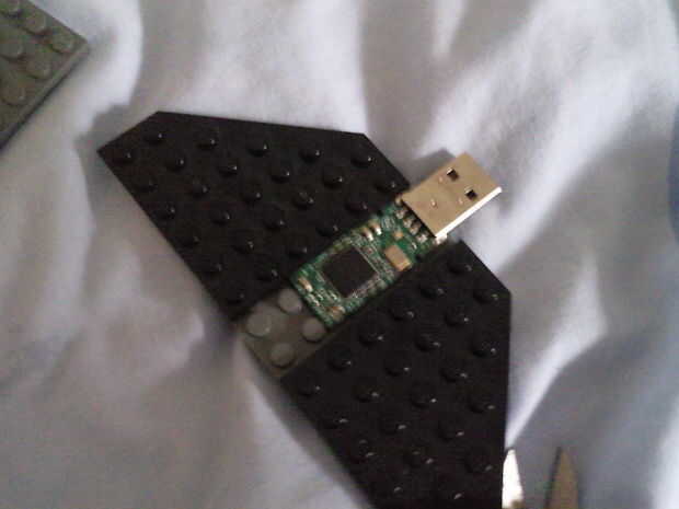 esto es una toma en la UNIDADUSB, que fue cubierto en Lego. El mío es un adaptador bluetooth que está cubierto de Lego, es en total el tamaño de ladrillo de 2 x 4.Se muestra a continuación es el adaptador de bluetooth antes y después de la modificaci