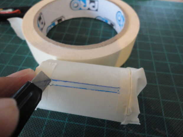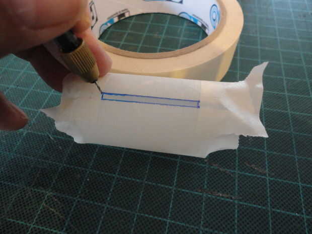 Usé cinta de enmascarar para formar el corte las áreas en el cartucho.
