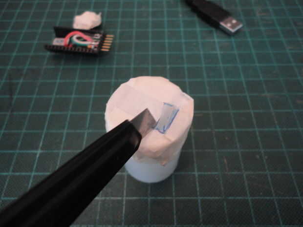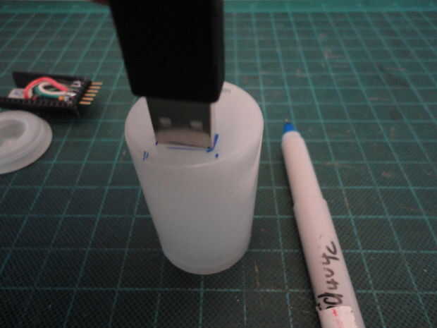 Luego repetí los pasos anteriores para marcar y cortar la abertura para el conector USB.