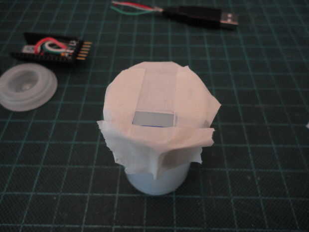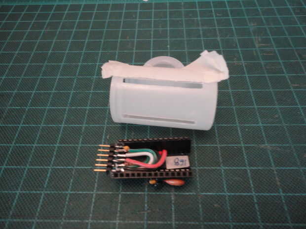 Era capaz de trazar la posición del receptáculo de 14 pines del ATmega168/328 a la superficie de la lata. Cuando coloqué el Arduino libre cerca de la superficie.