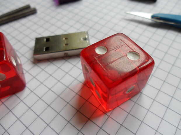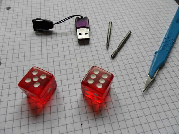 Tomé la vieja USB fuera de su cubierta y marcado un dado con un cuchillo afilado