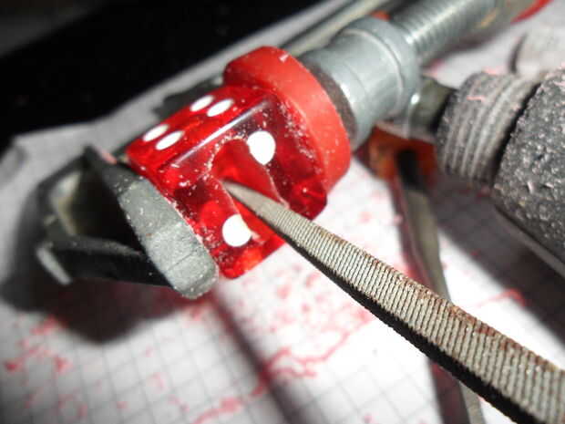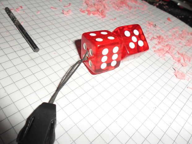 hice la misma perforación y fresado el procedimiento con el segundo dado. Después de un alisamiento de la final de mano he arreglado el USB en el troquel con pegamento caliente. Ahora usted puede poner las dos piezas juntas y listo!