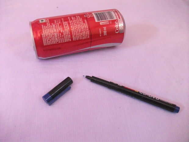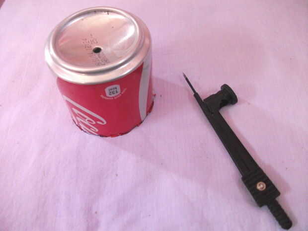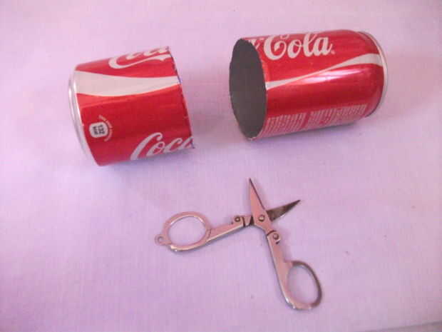 * Marque y corte la lata de refresco a la mitad con unas tijeras.