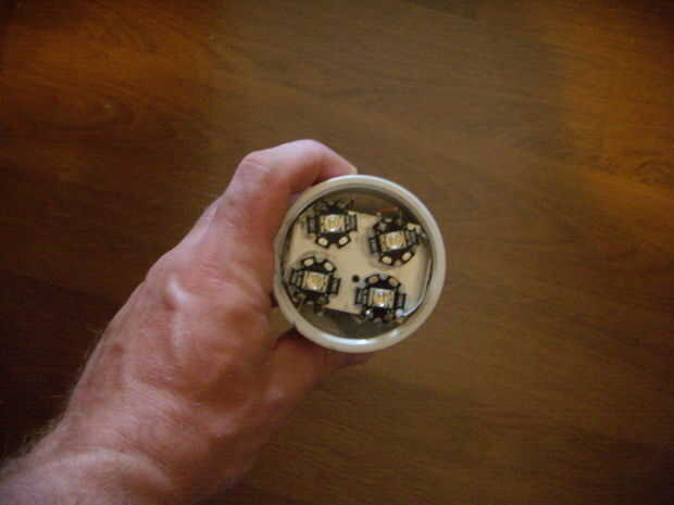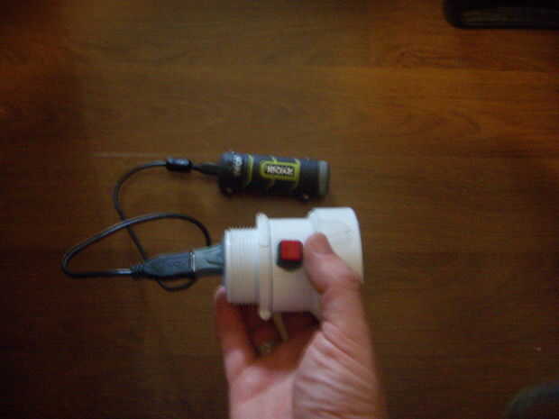 Difiere este instructable es mis cuatro Cree xr-e LED es accionado por una fuente de alimentación USB. Cualquier fuente de alimentación estándar de USB funciona con los cables apropiados. Mis dos fuentes de alimentación principales son una medida D la célula titular y una célula de energía recargable de Ryobi. También tengo un enchufe en la fuente que se potencia la linterna y una toma de corriente de 12v al adaptador del USB que puede utilizarse para energía!