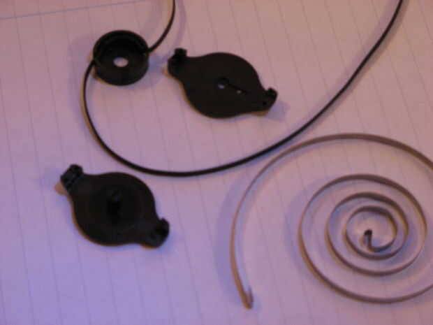 El tambor tiene un resorte en espiral grande dentro. El cable entra y sale alrededor de un canal en el lado, que mantiene alejados de la primavera.