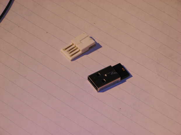El conector USB no era tan cooperativo. Tenía que destruir dos de ellos para salvar a las dos partes que necesitaba: el blindaje metálico y el cuerpo de plástico/goma. Las tripas echaste a perder porque se consigue sustituyendo el micro USB.