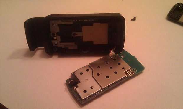 Empuje hacia atrás la cubierta trasera en la carcasa completamente e instalar el último de los dos tornillos. Este es el que tiene la cubierta trasera en la carcasa.