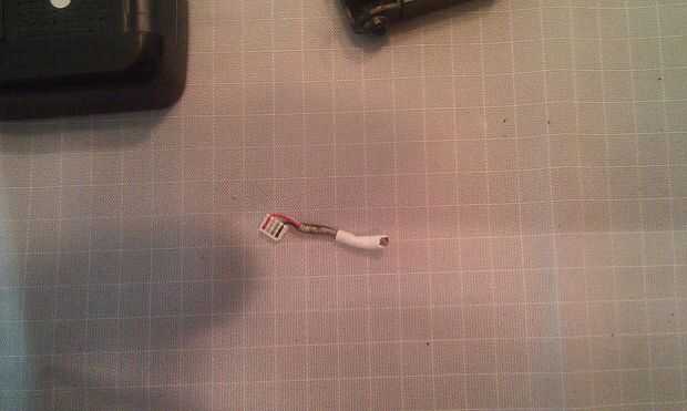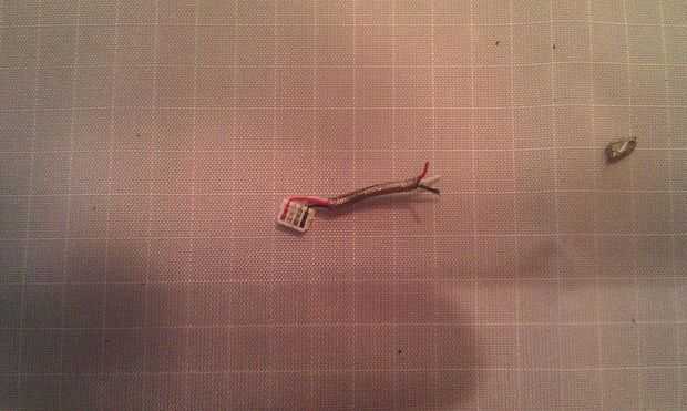 La otra mitad del mazo se une al conector USB. El mazo de cables del sí mismo dispone de una vaina protectora de acero alrededor de él. Tome una navaja afilada tanto la vaina acero para revelar los cuatro cables dentro de la tira y tira de cada uno de los cuatro cables en ambas mitades del mazo.
