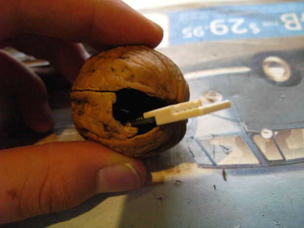Este es el paso final. Poner el USB en la nuez y encontrar una posición para él para que cierre correctamente y lo conector sobresale. Cuando está todo bien pegue juntos. Recuerda la pequeña unidades sobrado pueden utilizar para enmendar