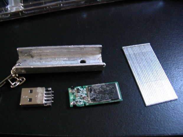 Si necesita archivos, cortar, etc. el caso al tamaño correcto. Lime los filos y taladrar los agujeros para el keycain y la luz. Con algún tipo de espaciador, corte una ranura en el interior de la caja para la Junta de la unidad a.