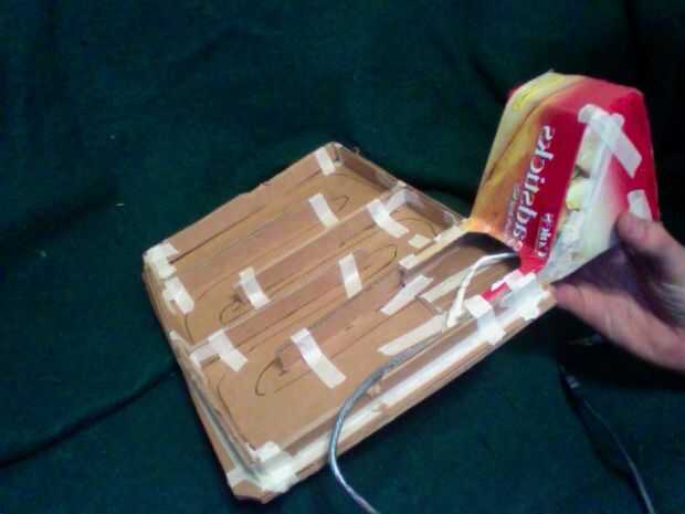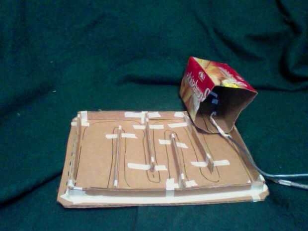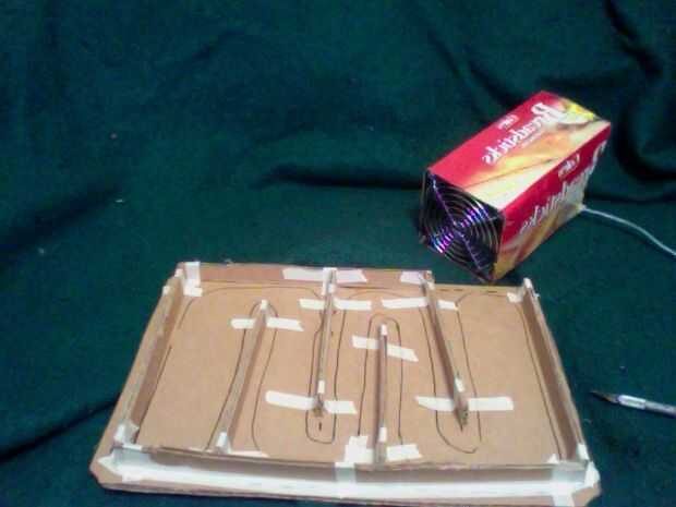 Corte los lados de la caja para canalizar el aire en la bandeja. Asegúrese de colocar el ventilador ahora que bastante atrás para que la pantalla pueda lean back.