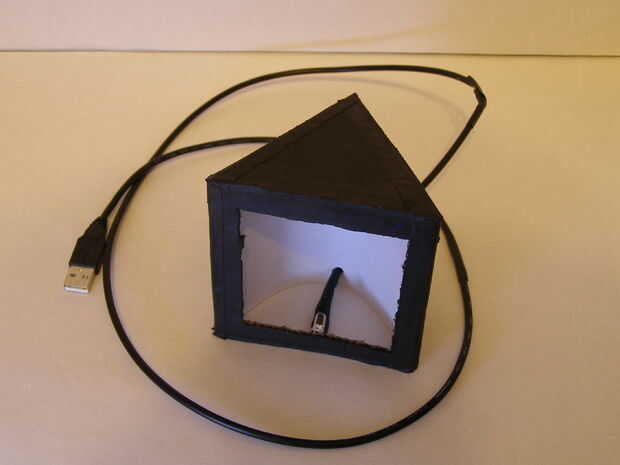 3 - hacer un agujero en la caja de detrás del papel lo suficientemente grande para el cable USB.