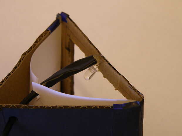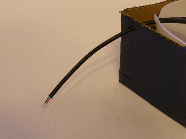 5 - alimentar el extremo cortado del cable del LED aunque el agujero en el papel y la caja del interior va fuera de la caja.