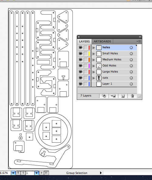 -"extraños" agujeros son para ser desechado (a excepción de la pieza en forma de "F")
