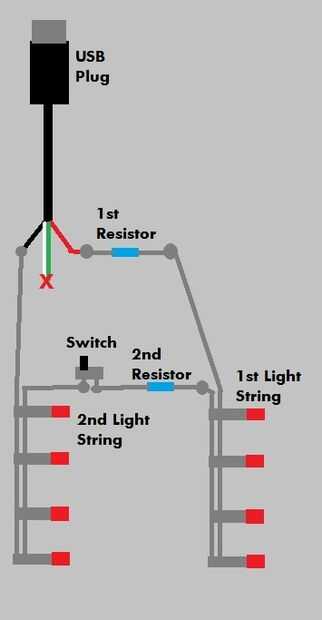 Unir todo aparte el conector USB (Asegúrese de que las dos cadenas de luces son la misma forma alrededor de otra manera no funciona) si no tienes resistencias con sus luces y estos deben ser omitidos del diagrama.
