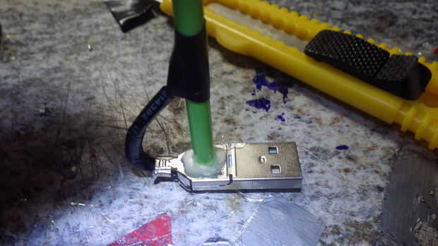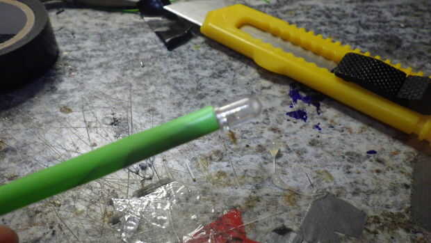 Fijar ahora la paja al USB y el LED con la pistola encoladora.