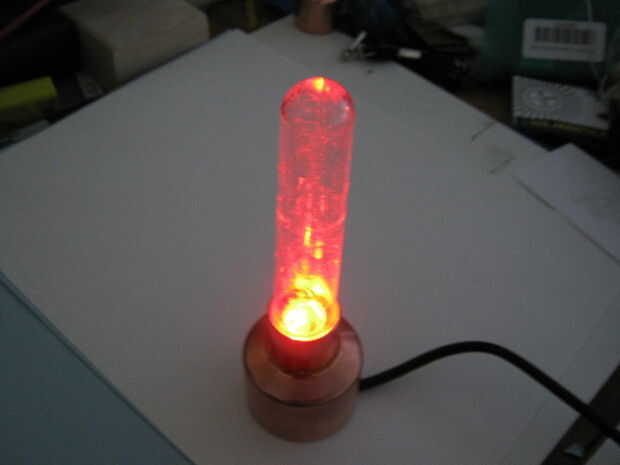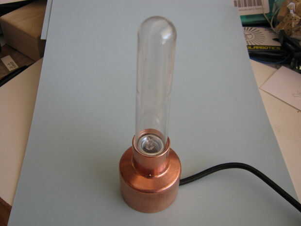 Si no puede encontrar un cristal adecuado, puede probar los tubos de plástico que mantener fresco solo rosas floristas. El tubo descansará en el interior de la tubería la tuerca de la misma manera como el cristal. Si consigues un tubo usado, como lo hice, no se preocupe si usted no puede conseguir el tubo para estar super limpia y sin manchas - añaden los arañazos e imperfecciones para el efecto. El tubo tiene un interesante efecto de apariencia similar a las luces de neón y una reminiscencia de los días de la temprana experimentación con la electricidad y los tubos de vacío.