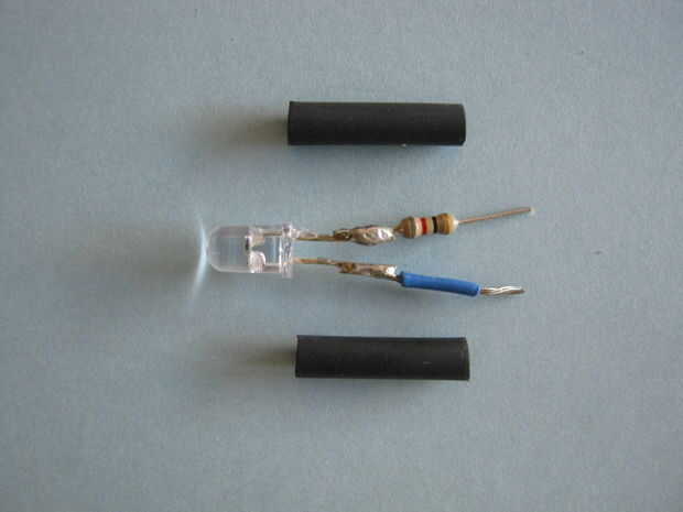 3. usando una pistola de calor u otra fuente de calor, aplicar calor a la tubería hasta que se contrae alrededor de los conductores. Al final sería como la tercera imagen. MUY importante: Como haces este paso, tome nota de que el plomo tiene la resistencia. Usted necesitará saber lo siguiente para conectar correctamente los cables a los conductores de cable de alimentación USB.